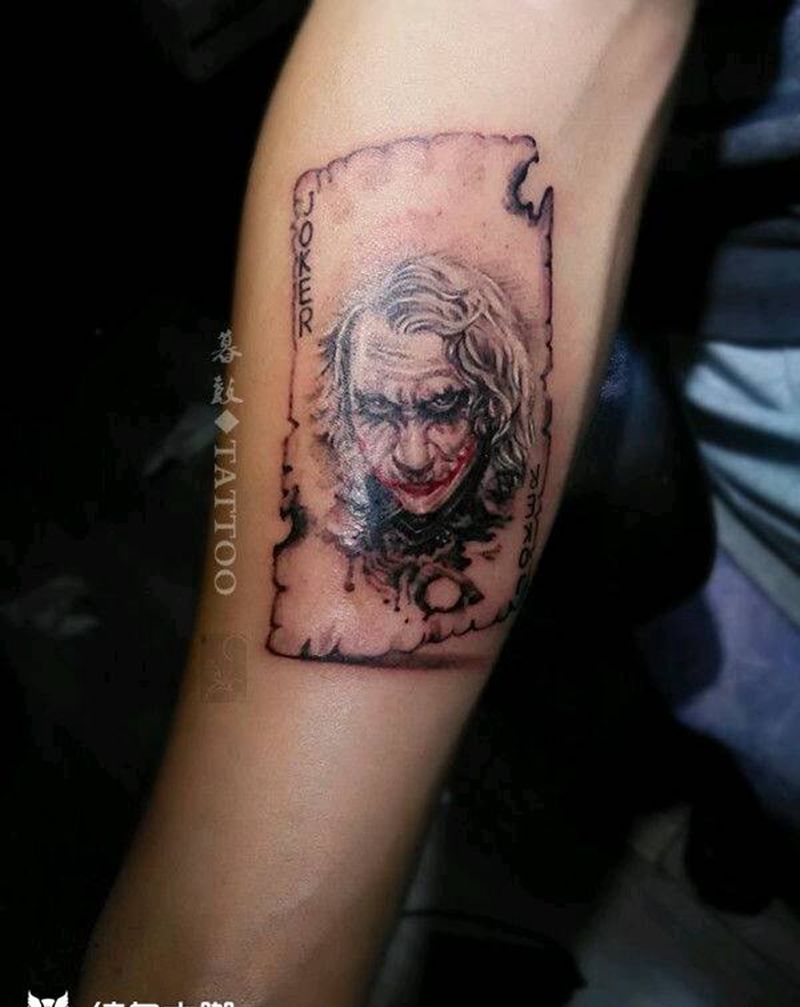 黑暗小丑纹身图片_手臂肖像写实原创成品纹身图案