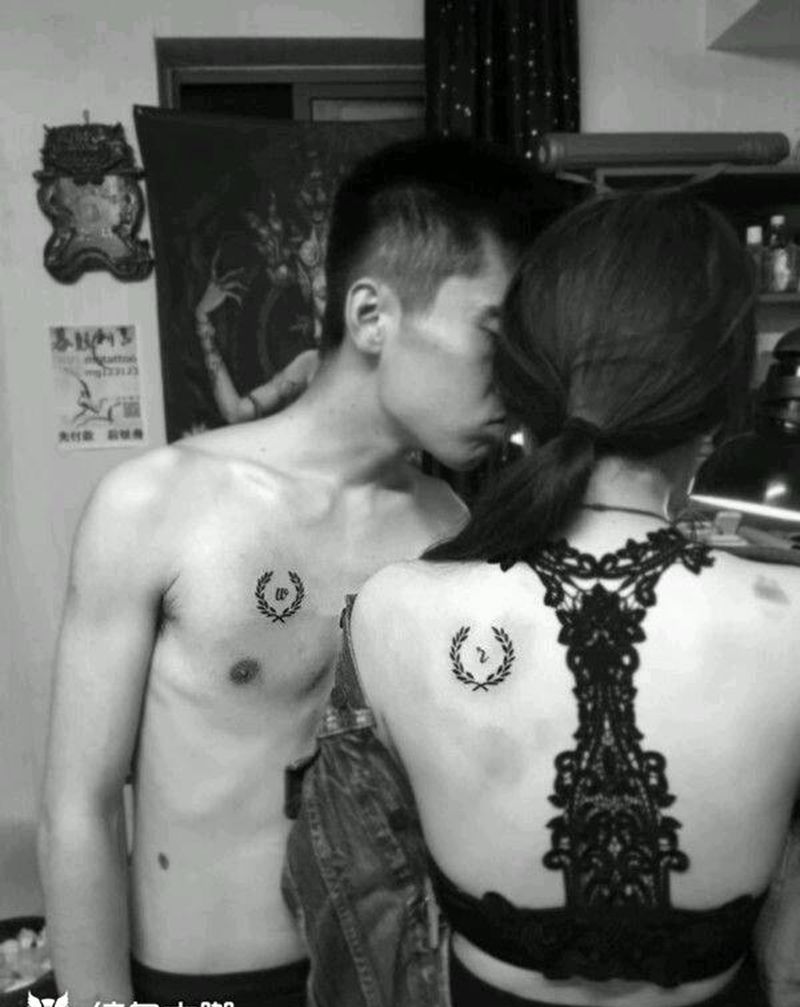 橄榄叶&情侶纹身图片_胸部背部清新原创成品纹身图案