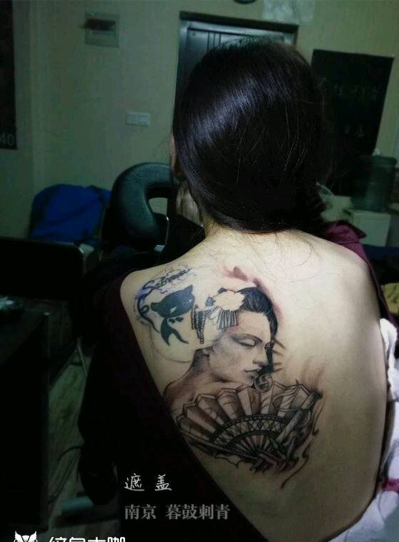 遮盖<美女D艺妓>纹身图片_背部传统人物原创成品纹身图案
