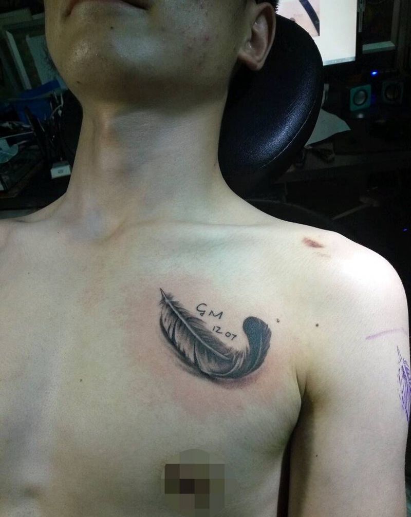当前位置: 首页 >江苏省南京市纹身店-暮鼓刺青纹身图案>羽~字纹身图片_胸部清新静物原创成品纹身图案
