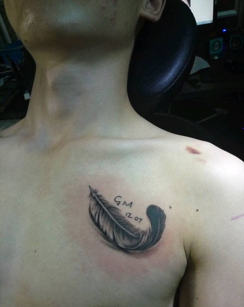 当前位置: 首页 >江苏省南京市纹身店-暮鼓刺青纹身图案>羽~字纹身图片_胸部清新静物原创成品纹身图案