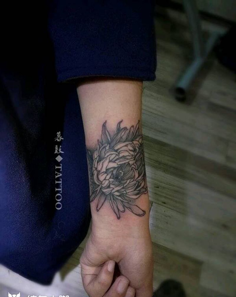 当前位置: 首页 >江苏省南京市纹身店-暮鼓刺青纹身图案>独爱菊纹身图片_手臂清新原创成品纹身图案