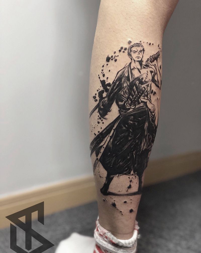 zoro纹身图片_水墨纹身图案