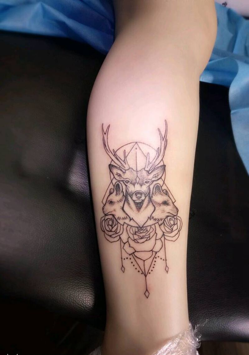 当前位置: 首页 >江苏省南京市纹身店-暮鼓刺青纹身图案>说这叫"一路(鹿)有你"纹身图片