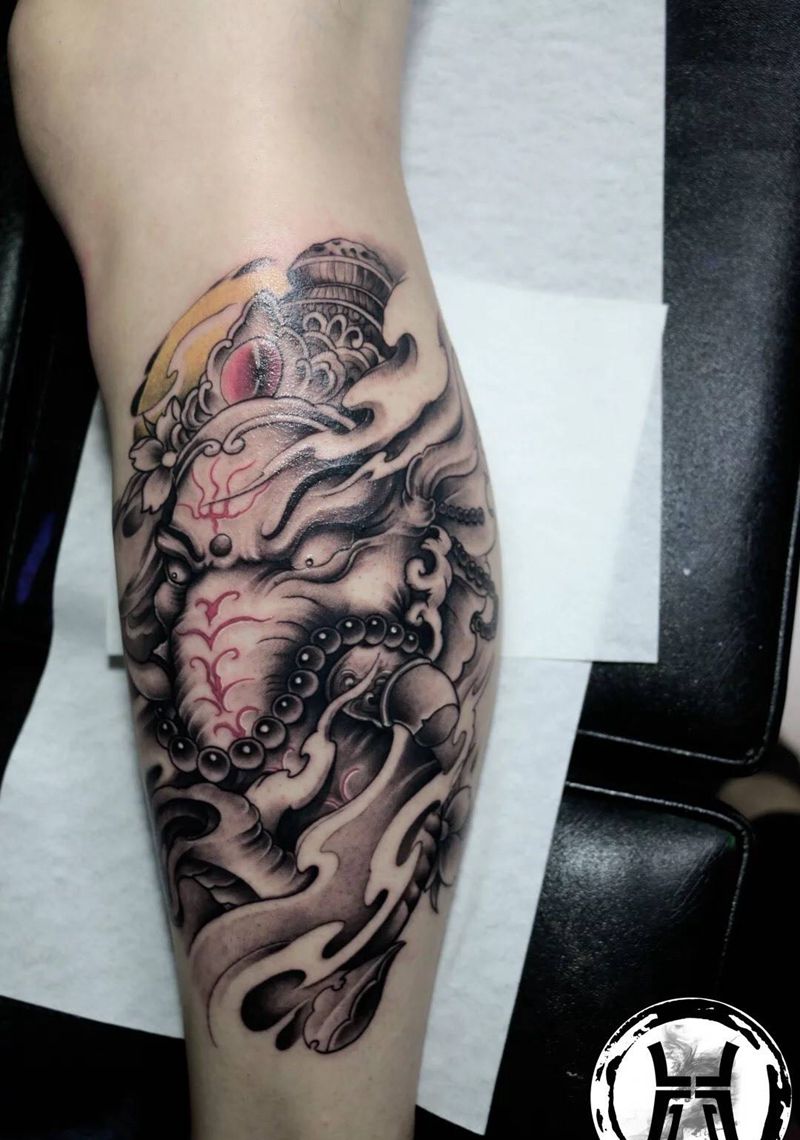• T网红王老大花腿龙纹身图片_腿部新传统纹身图案