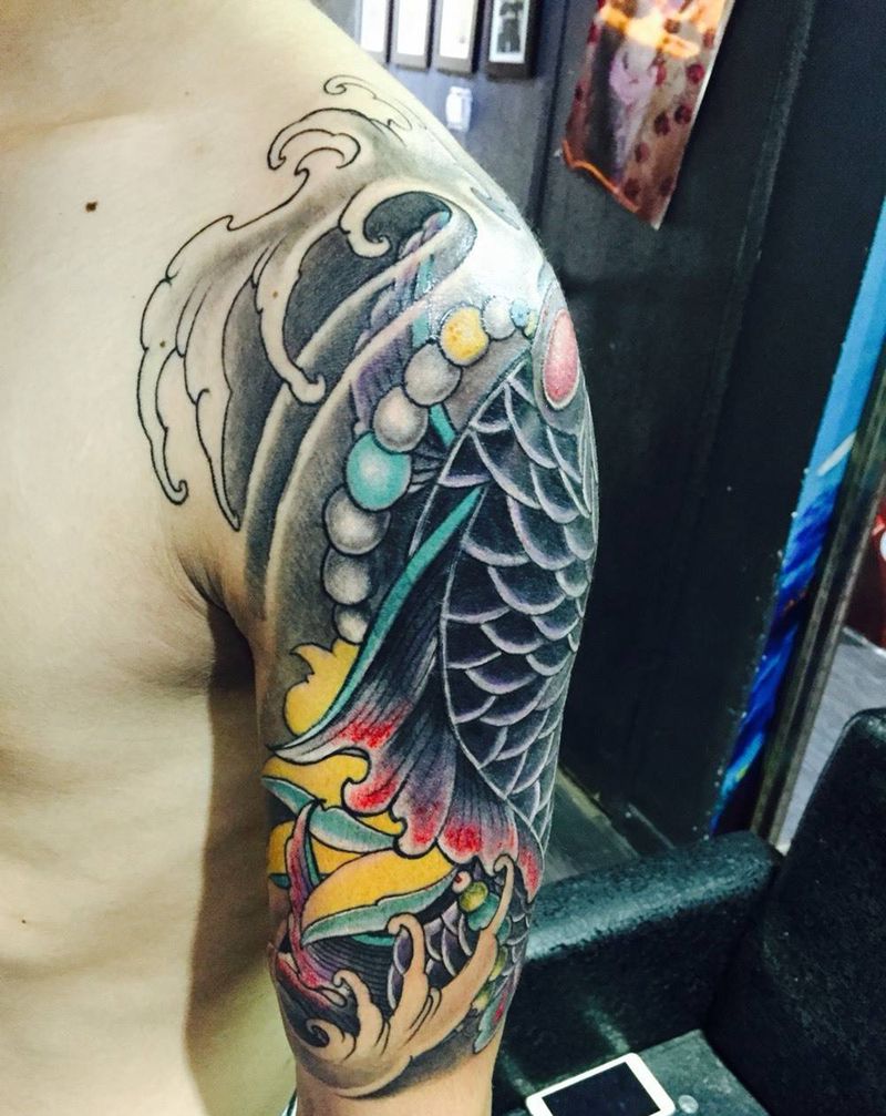 当前位置: 首页 >江苏省南京市纹身店-南京老山刺青纹身图案>遮盖作品锦鲤纹身图片