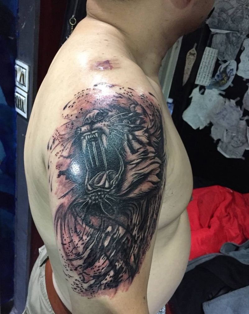 当前位置: 首页 >江苏省南京市纹身店-南京老山刺青纹身图案>大臂泼墨虎纹身图片