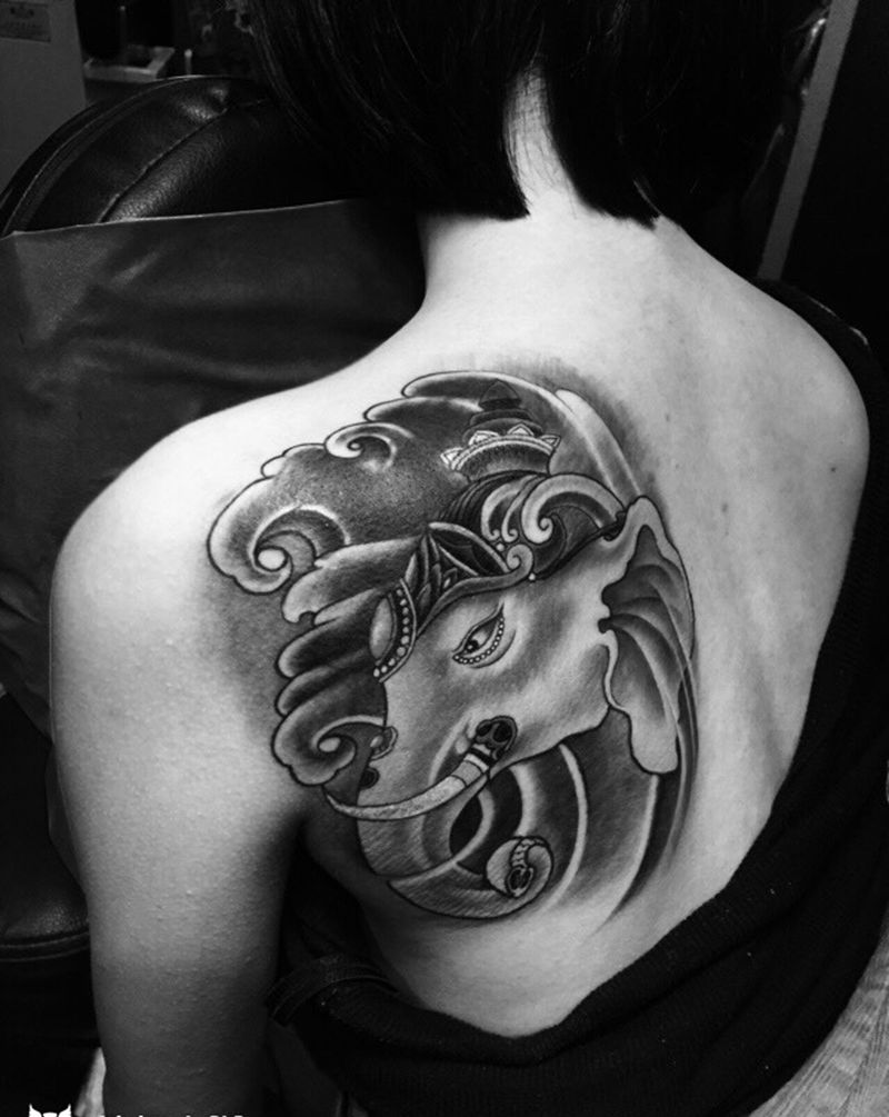 当前位置: 首页 >江苏省南京市纹身店-南京老山刺青纹身图案>遮盖老纹身象神纹身图片
