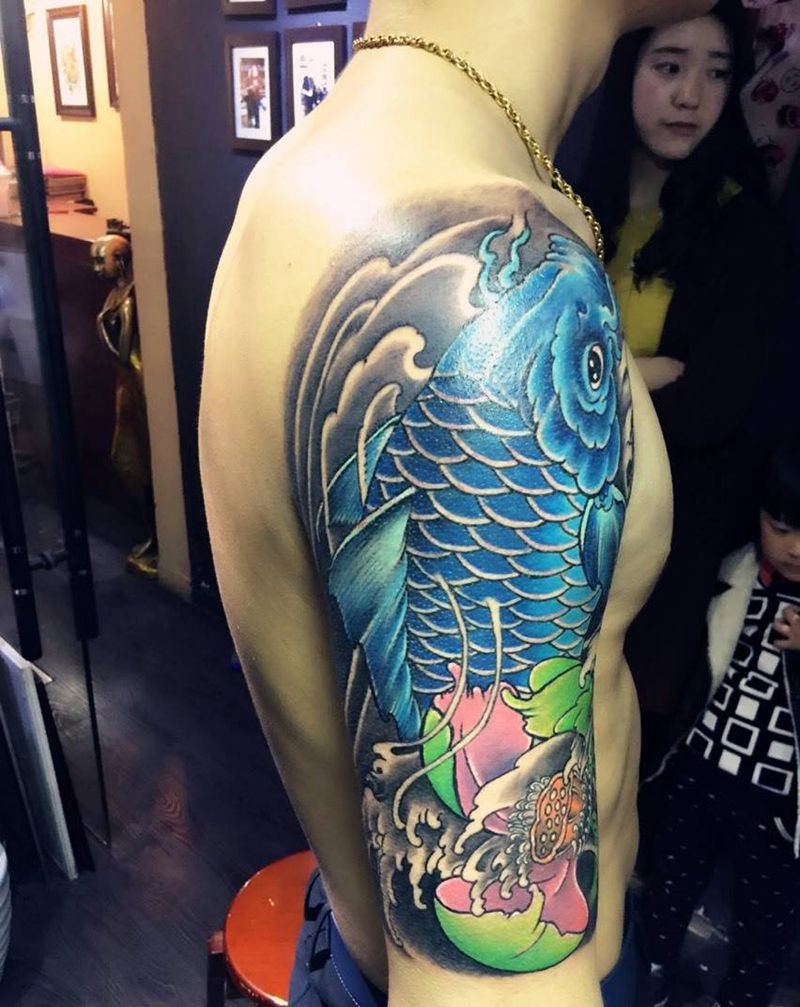 当前位置: 首页 >江苏省南京市纹身店-南京老山刺青纹身图案>锦鲤包大臂纹身图片