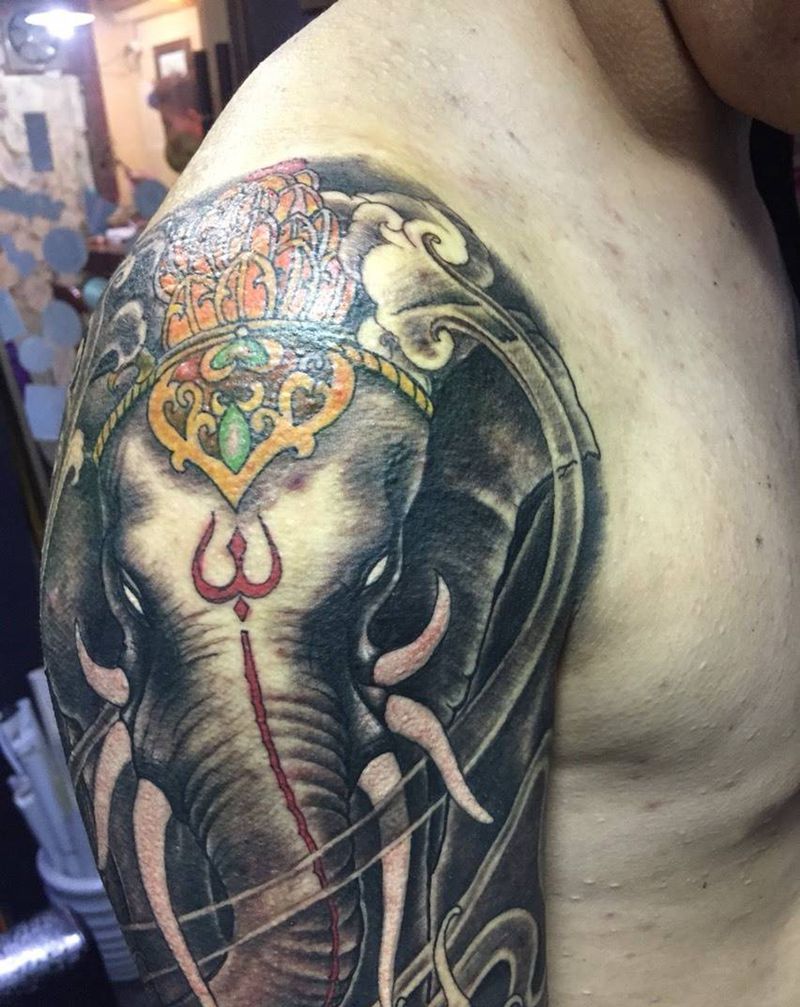 当前位置: 首页 >江苏省南京市纹身店-南京老山刺青纹身图案>包大臂象神纹身图片
