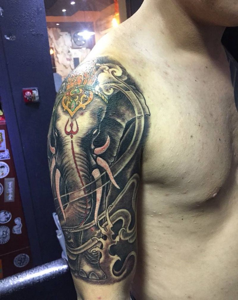 当前位置: 首页 >江苏省南京市纹身店-南京老山刺青纹身图案>包大臂象神纹身图片