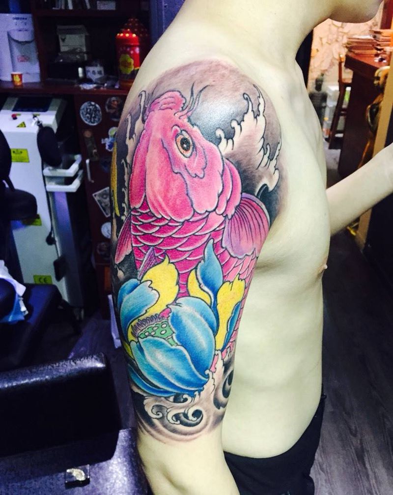 当前位置: 首页 >江苏省南京市纹身店-南京老山刺青纹身图案>荷花锦鲤纹身图片