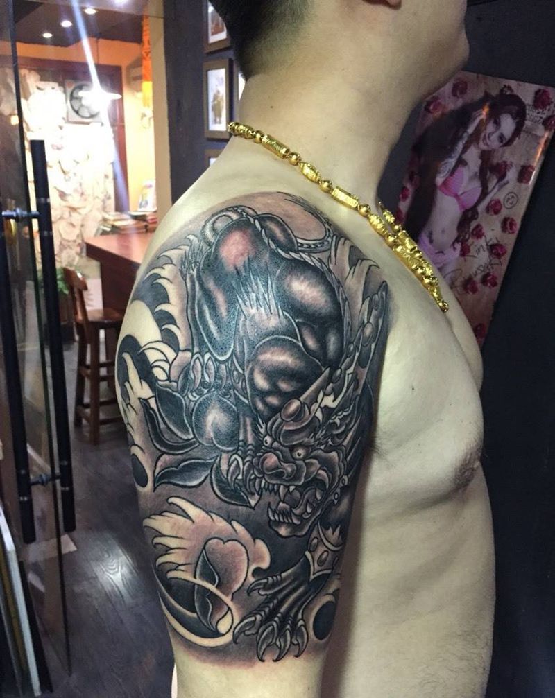 当前位置: 首页 >江苏省南京市纹身店-南京老山刺青纹身图案>包大臂貔貅纹身图片
