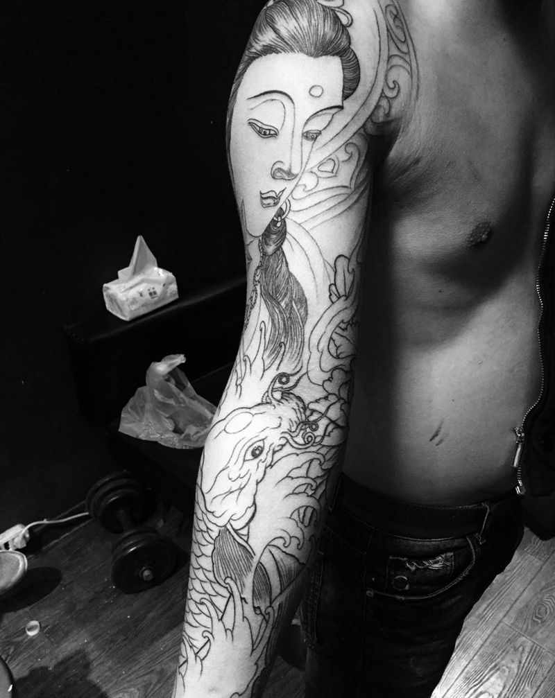 当前位置: 首页 >江苏省南京市纹身店-南京老山刺青纹身图案>线条轮廓佛教题材花臂纹身图片