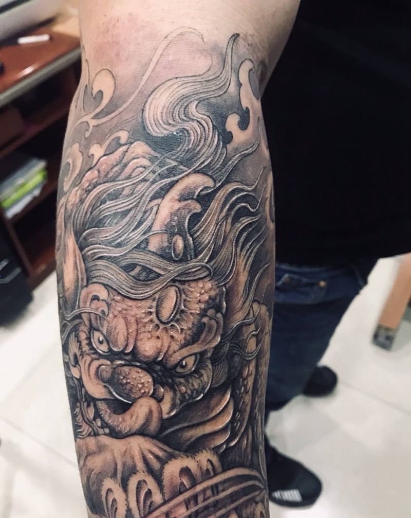 • T网红王老大花腿龙纹身图片_腿部新传统纹身图案