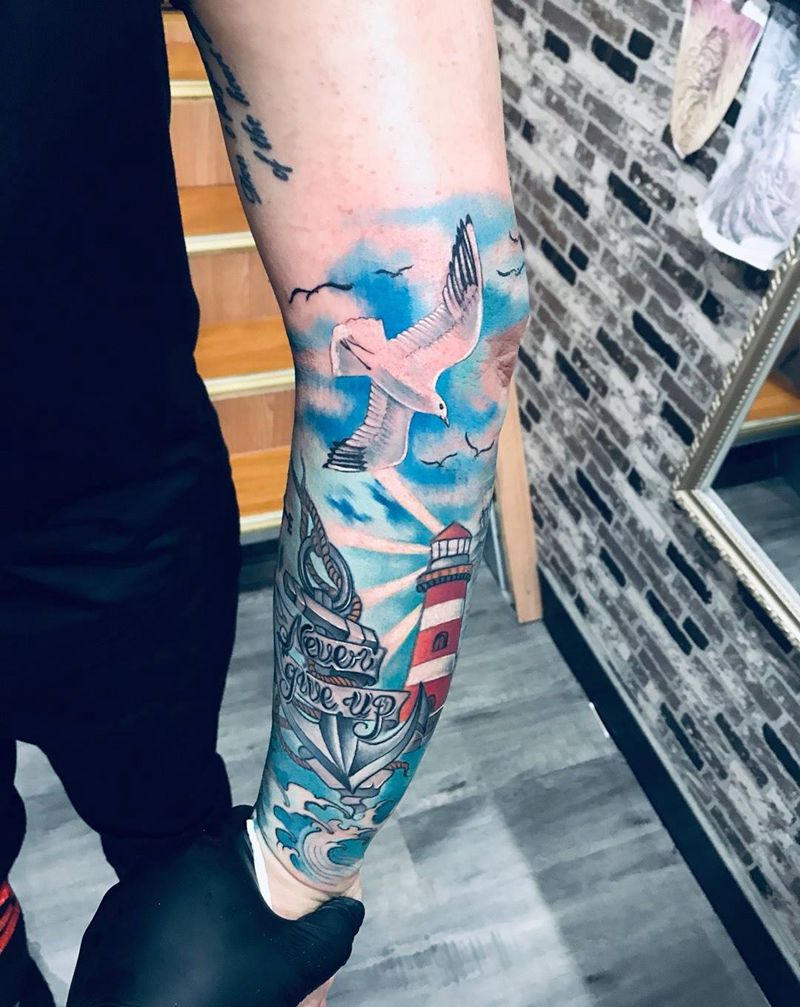 • T网红王老大花腿龙纹身图片_腿部新传统纹身图案
