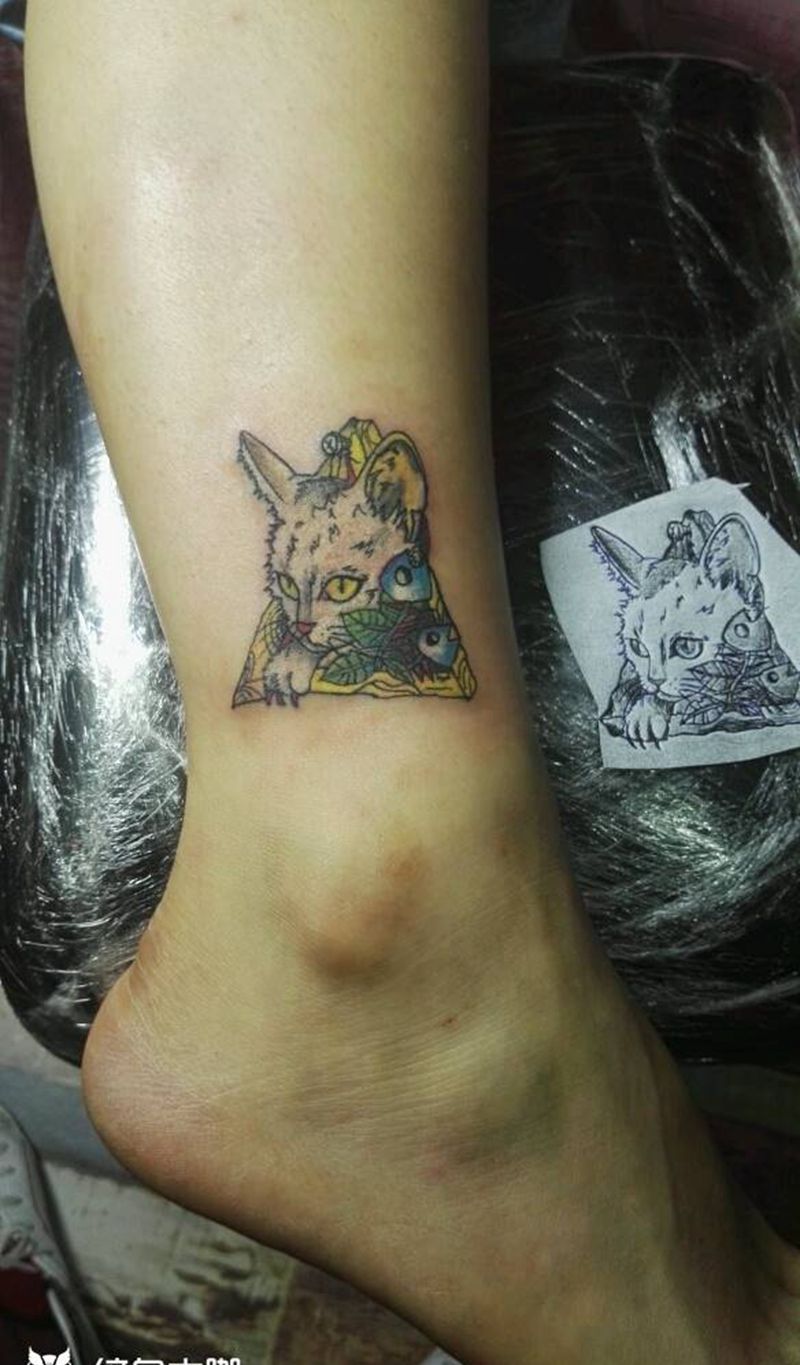 小猫咪~图太小了纹身图片_脚部欧美动物静物成品纹身图案