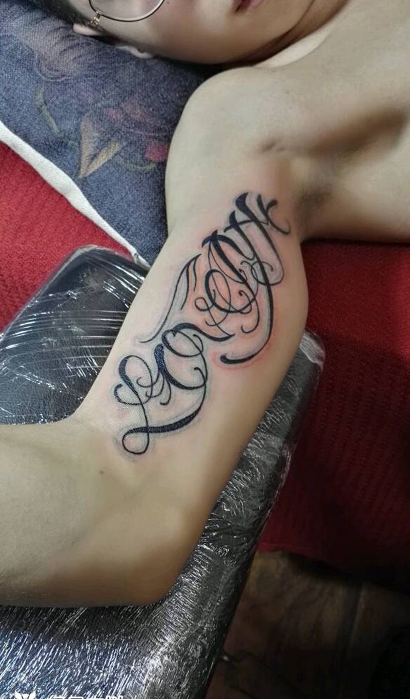 当前位置: 首页 >江苏省南京市纹身店-南京格调纹身(收学员)微:ke79798纹身图案>给帅哥设计的花体英文纹身图片_手臂欧美几何字符成品纹身图案