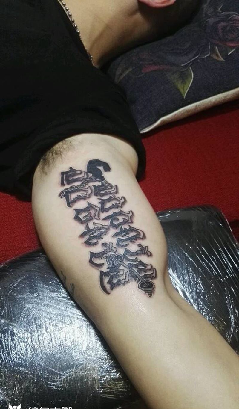 当前位置: 首页 >江苏省南京市纹身店-南京格调纹身(收学员)微:ke79798纹身图案>花体英文纹身图片_手臂传统人物成品纹身图案