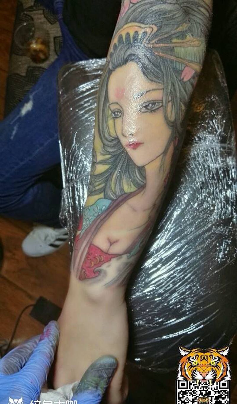 当前位置: 首页 >江苏省南京市纹身店-南京格调纹身(收学员)微:ke79798纹身图案>艺妓包小臂!纹身图片_手臂传统人物成品纹身图案