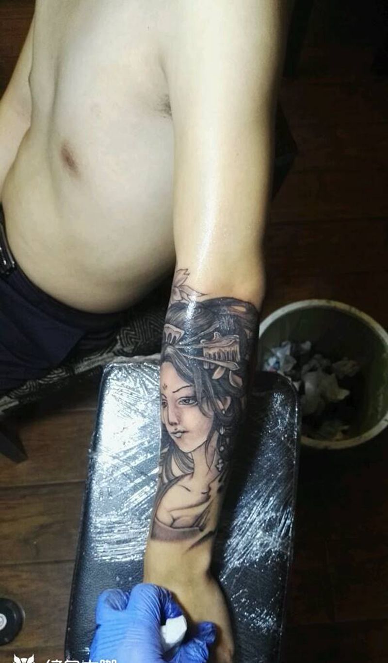 当前位置: 首页 >江苏省南京市纹身店-南京格调纹身(收学员)微:ke79798纹身图案>艺妓小臂纹身图片_手臂传统人物成品纹身图案