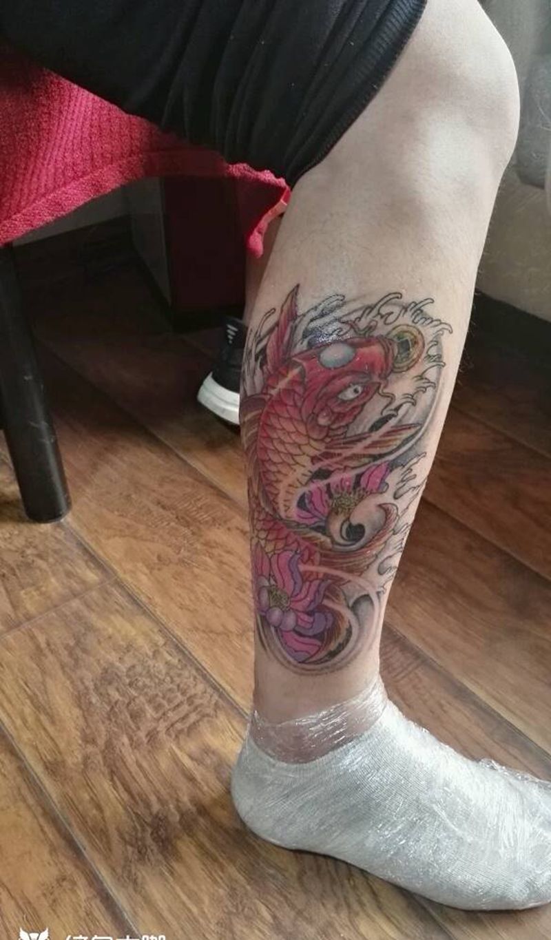 鲤鱼!纹身图片_腿部传统动物成品纹身图案