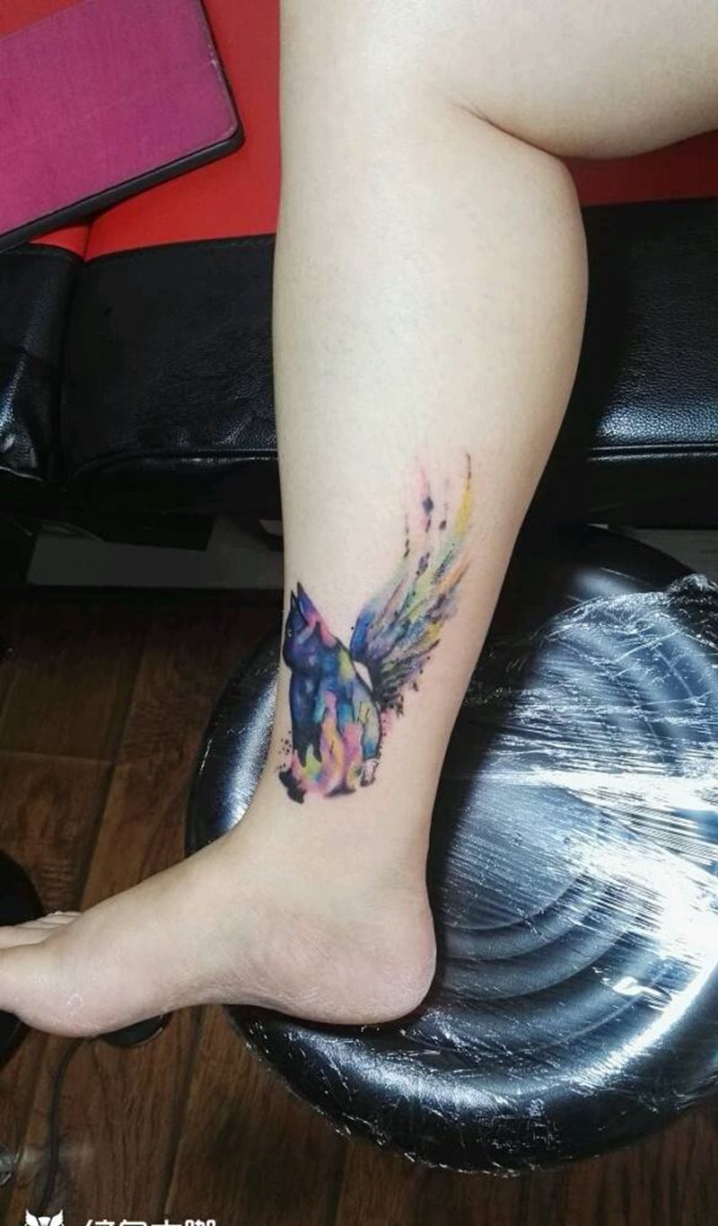 猫咪纹身图片_脚部欧美动物成品纹身图案