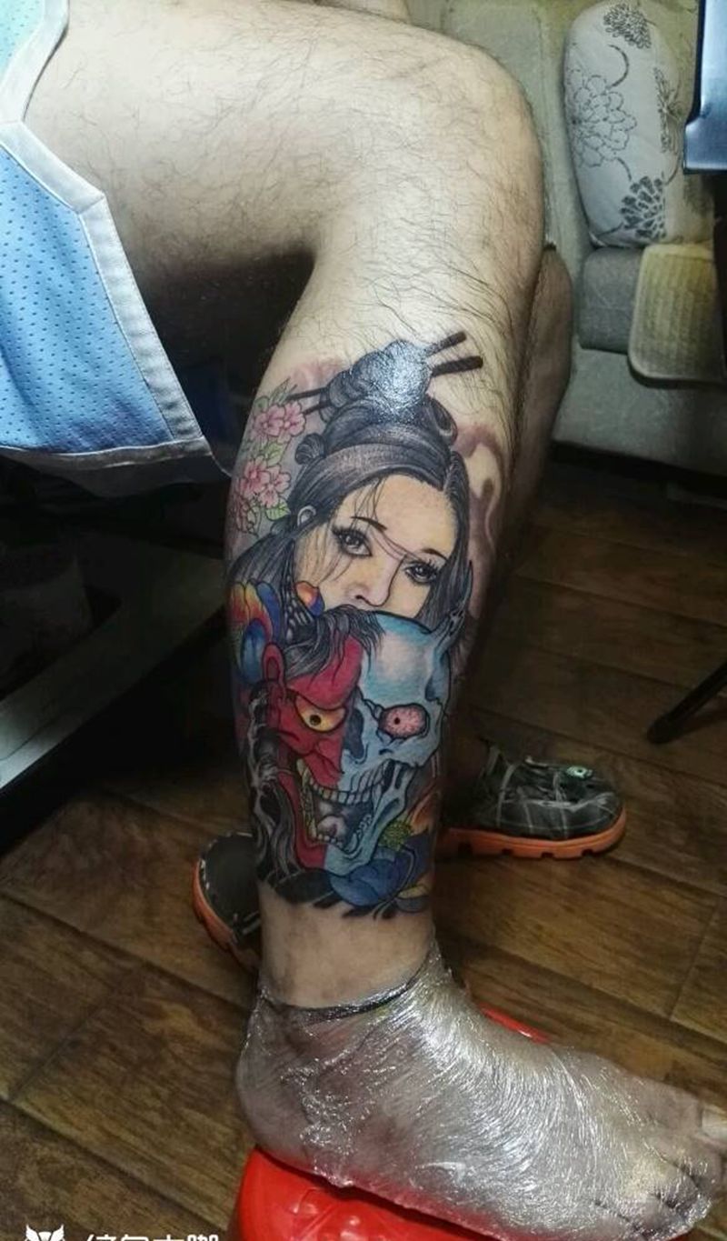当前位置: 首页 >江苏省南京市纹身店-南京格调纹身(收学员)微:ke79798纹身图案>小腿艺妓!纹身图片_腿部传统人物成品纹身图案