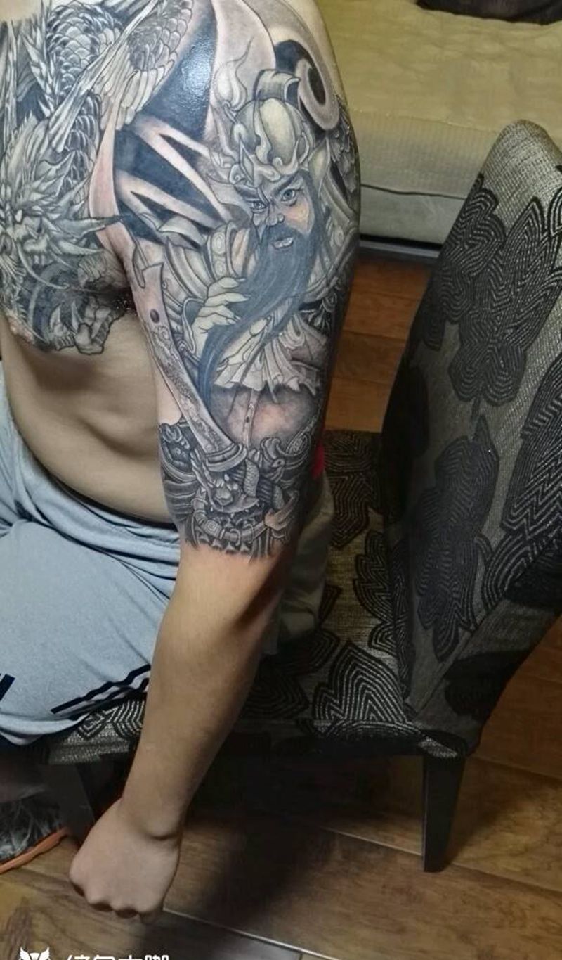 当前位置: 首页 >江苏省南京市纹身店-南京格调纹身(收学员)微:ke79798纹身图案>关公配龙半甲纹身图片_肩部手臂传统人物鬼神成品纹身图案