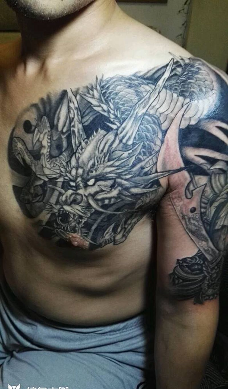 当前位置: 首页 >江苏省南京市纹身店-南京格调纹身(收学员)微:ke79798纹身图案>关公配龙半甲纹身图片_肩部手臂传统人物鬼神成品纹身图案