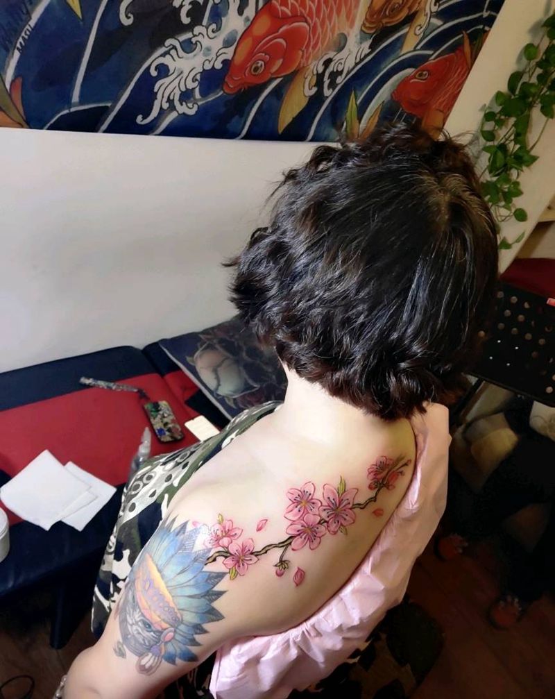 当前位置: 首页 >江苏省南京市纹身店-南京格调纹身(收学员)微:ke79798纹身图案>桃花纹身图片_肩部新传统纹身图案