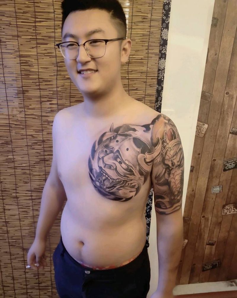 当前位置: 首页 >江苏省南京市纹身店-南京格调纹身(收学员)微:ke79798纹身图案>半甲纹身图片_肩部胸部纹身图案