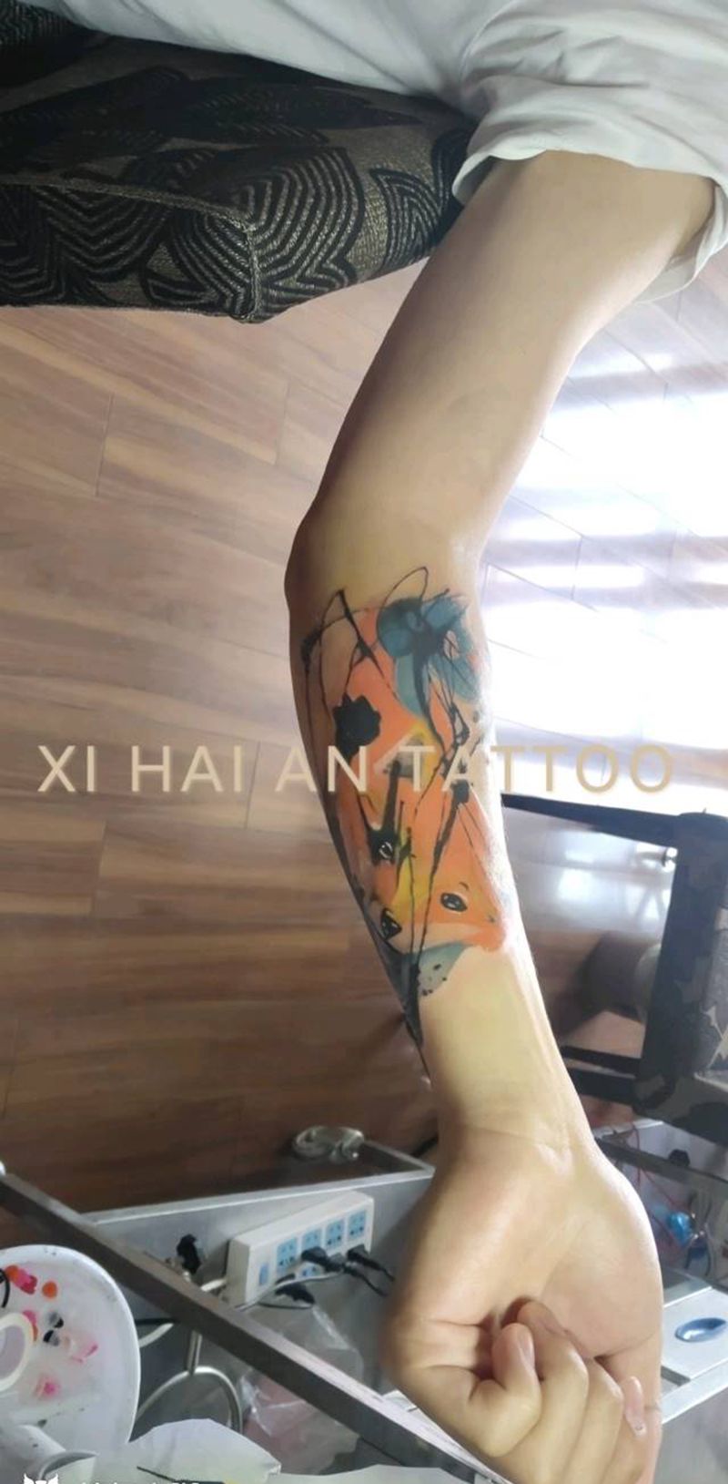 当前位置: 首页 >江苏省南京市纹身店-南京格调纹身(收学员)微:ke79798纹身图案>水墨狐狸799元纹身图片_手臂水彩纹身图案
