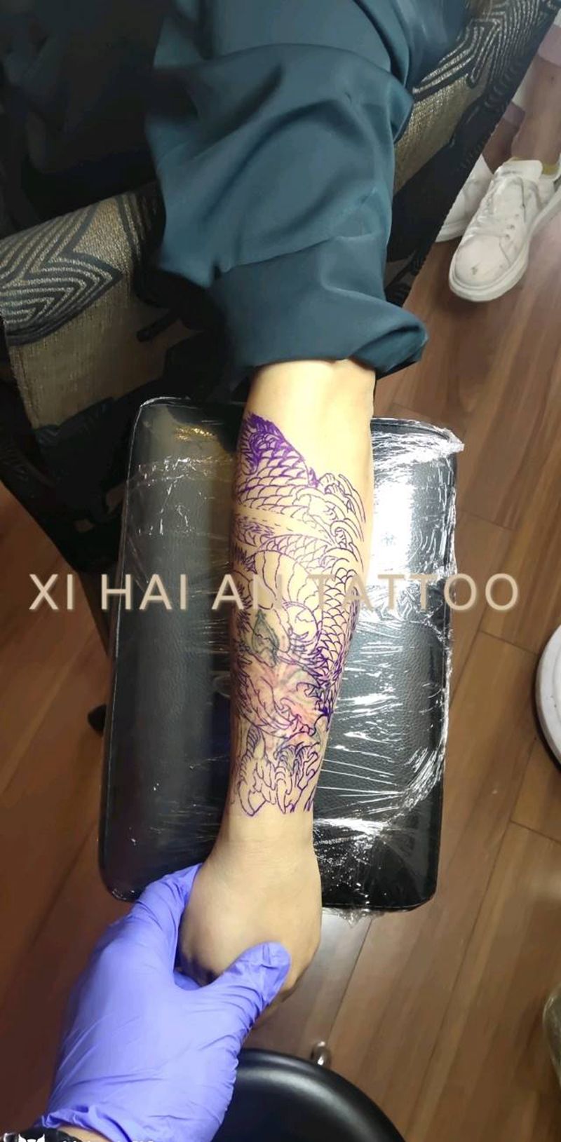 • T网红王老大花腿龙纹身图片_腿部新传统纹身图案