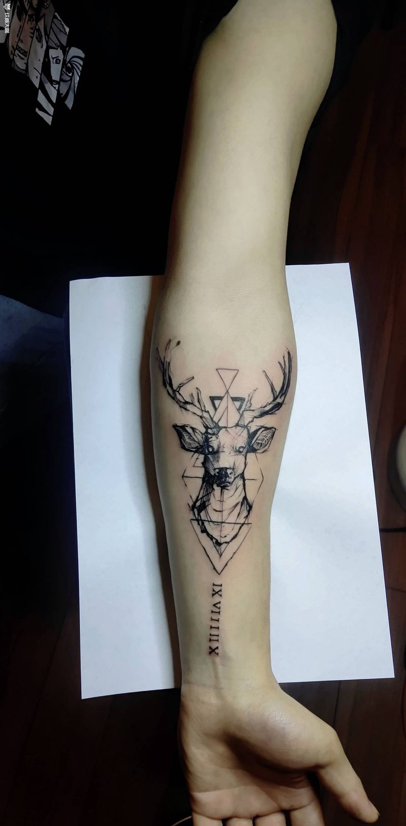 当前位置: 首页 >江苏省南京市纹身店-南京格调纹身(收学员)微:ke79798纹身图案>799元鹿纹身图片_手臂几何纹身图案