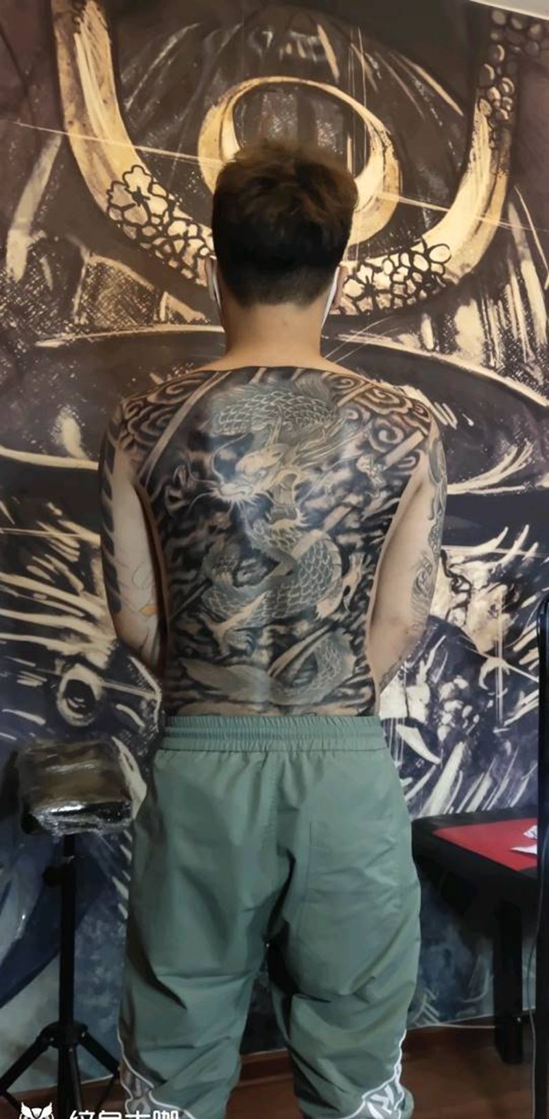 • 黑灰满背纹身图案