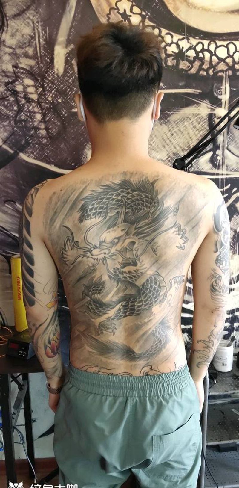 黑灰满背纹身图案