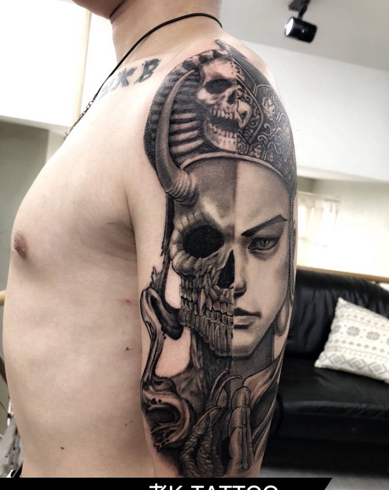 当前位置: 首页 >江苏省南京市纹身店-老K TATTOO纹身图案>佛与魔纹身图片_手臂欧美写实纹身图案
