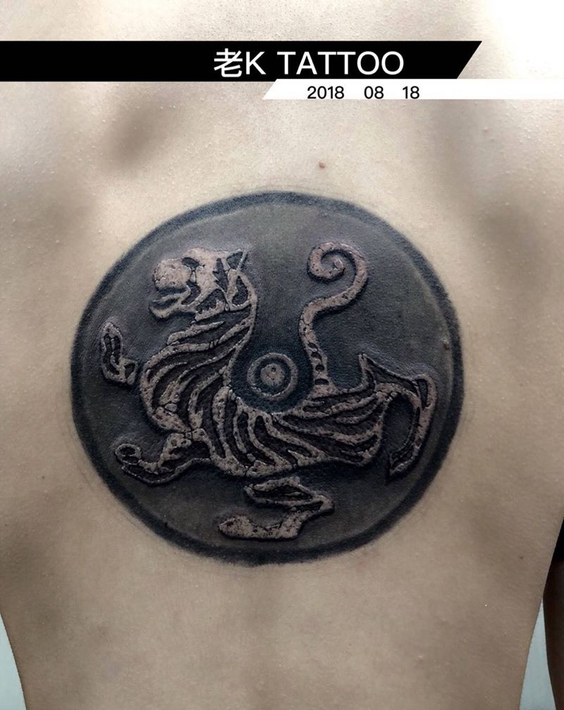 当前位置: 首页 >江苏省南京市纹身店-老K TATTOO纹身图案>瓦当纹样白虎石雕纹身图片_背部图腾欧美写实纹身图案