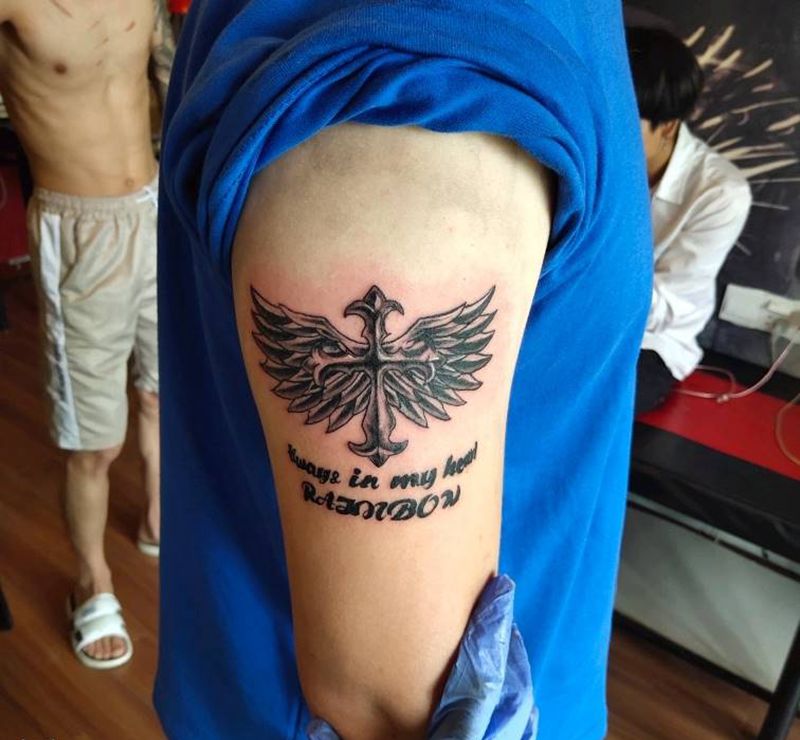 当前位置: 首页 >江苏省南京市纹身店-胖虎TATTOO纹身图案>十字架纹身图片_手臂欧美写实纹身图案