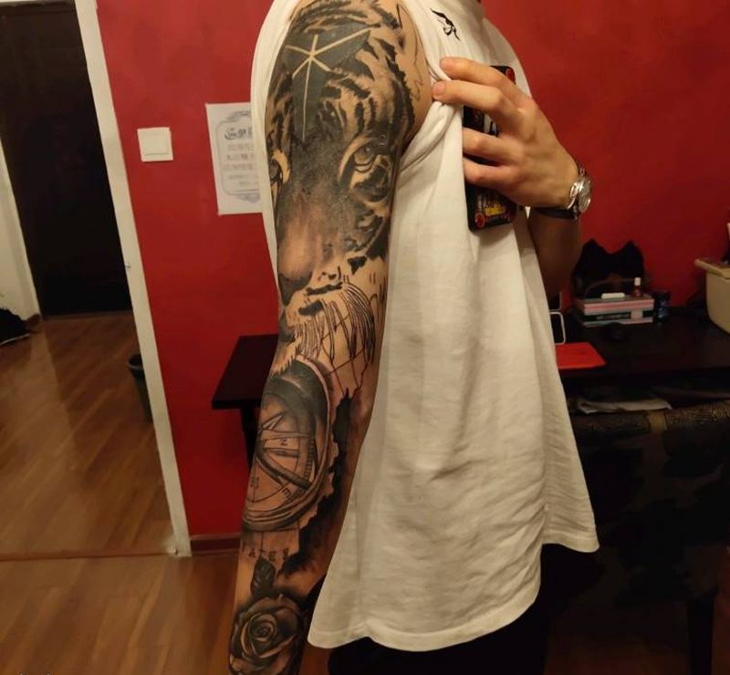 当前位置: 首页 >江苏省南京市纹身店-胖虎TATTOO纹身图案>花臂遮盖纹身图片_手臂欧美写实纹身图案