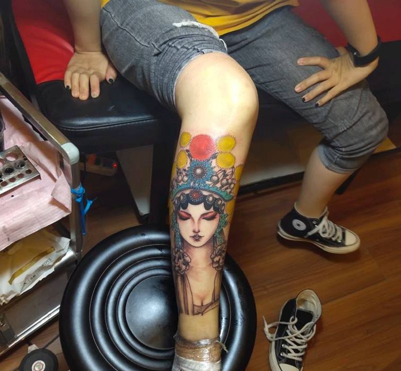 当前位置: 首页 >江苏省南京市纹身店-胖虎TATTOO纹身图案>花旦纹身图片_腿部老传统花旦艺伎纹身图案