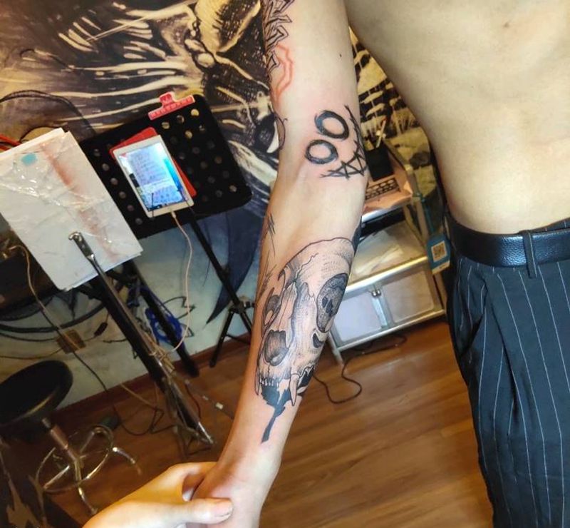 当前位置: 首页 >江苏省南京市纹身店-胖虎TATTOO纹身图案>比鲁斯·骷髅纹身图片_手臂欧美写实暗黑系纹身图案