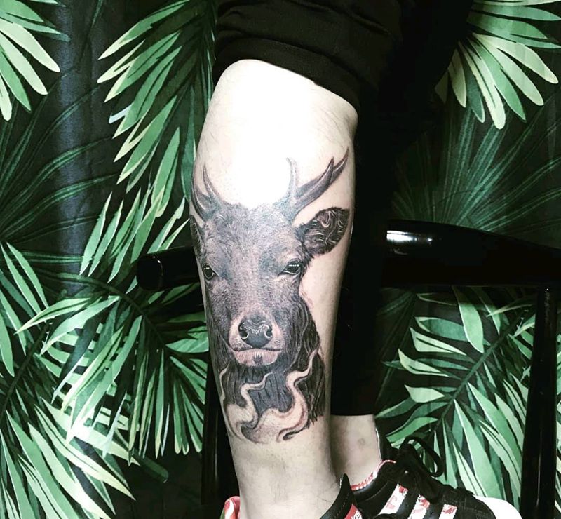 当前位置: 首页 >江苏省南京市纹身店-老K TATTOO纹身图案>写实小鹿纹身图片_手臂欧美写实手绘纹身图案