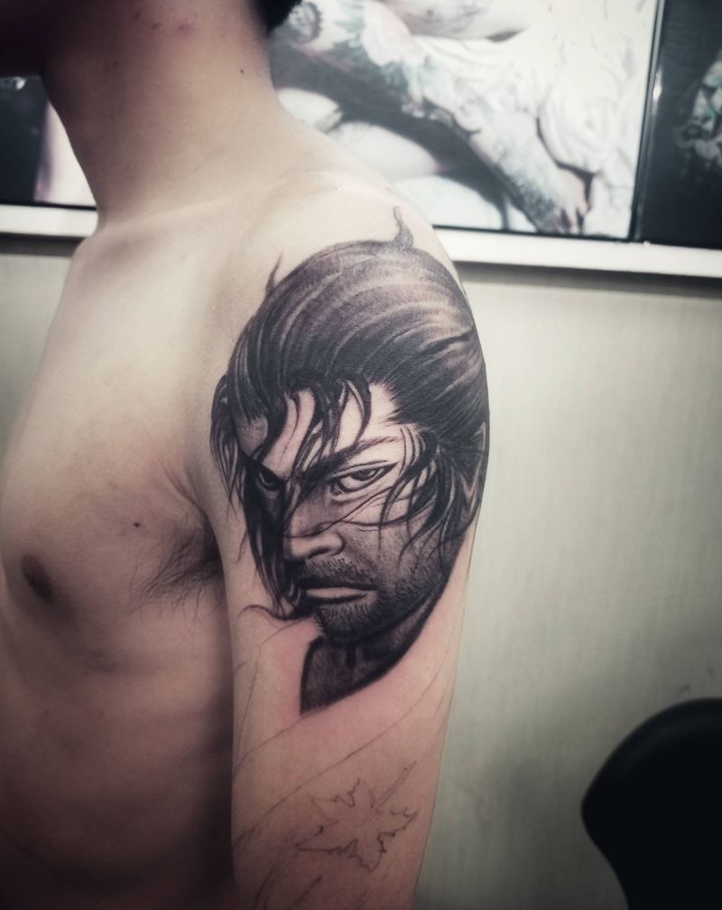 《风》纹身图片_手臂新传统宫本武藏纹身图案