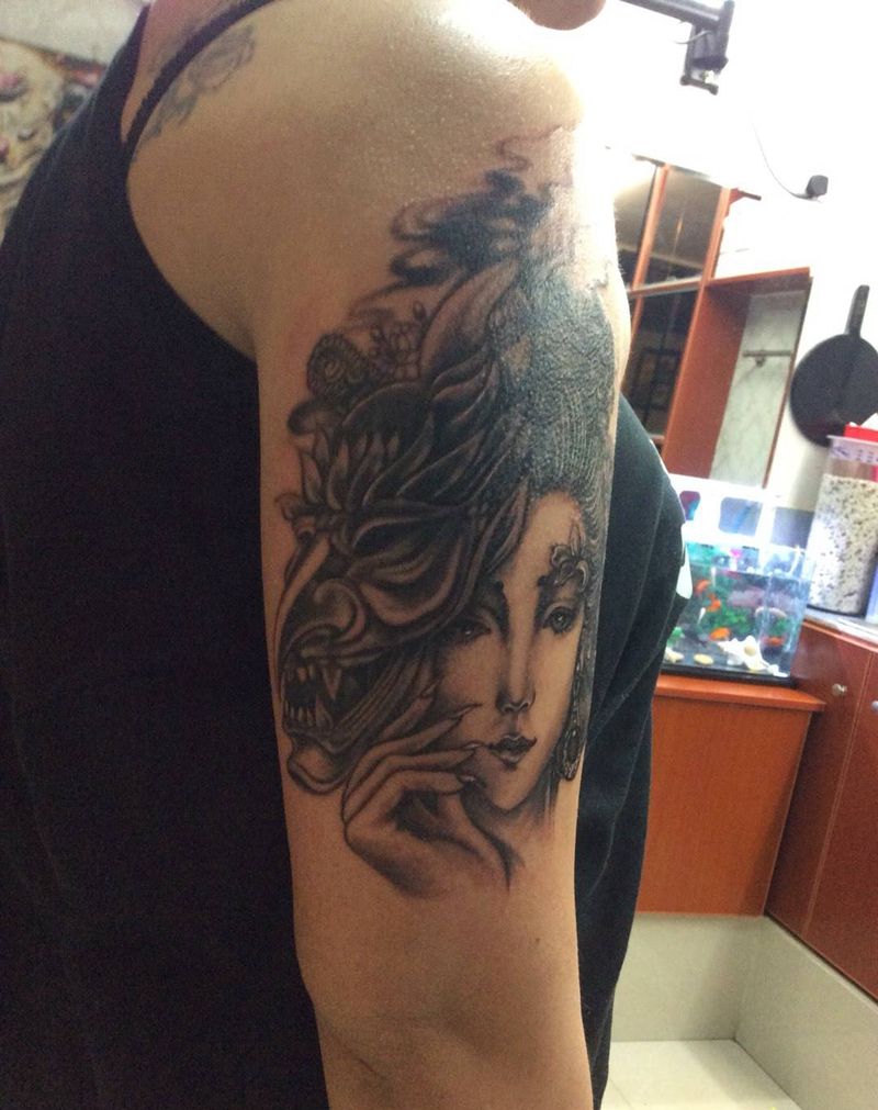 当前位置: 首页 >江苏省南京市纹身店-南京谢志-刺青 Tattoo纹身图案>艺妓纹身图片_成品手臂传统人物纹身图案