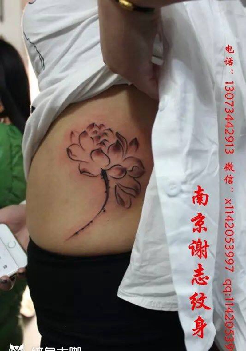 • 时尚性感的腹部莲花纹身图案