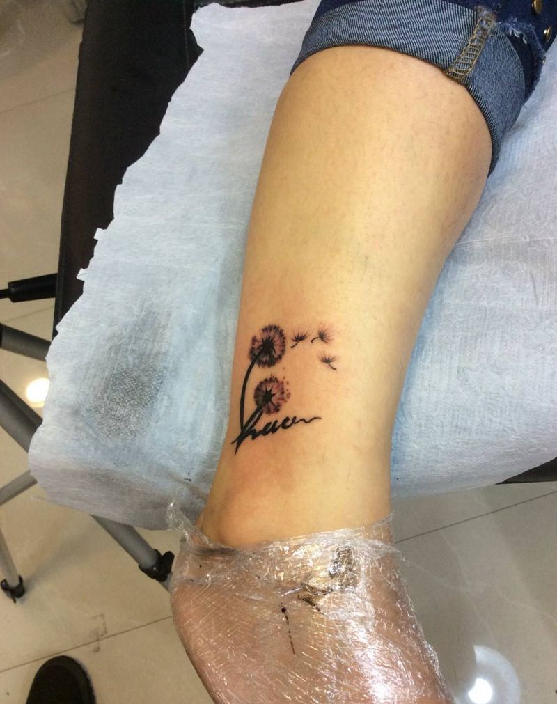 当前位置: 首页 >江苏省南京市纹身店-南京谢志-刺青 Tattoo纹身图案>蒲公英纹身图片_成品腿部清新静物字符纹身图案