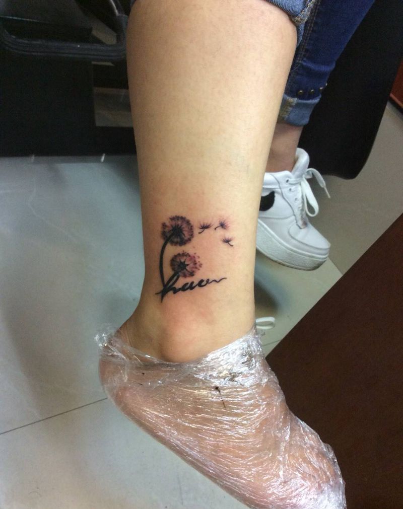 当前位置: 首页 >江苏省南京市纹身店-南京谢志-刺青 Tattoo纹身图案>蒲公英纹身图片_成品腿部清新静物字符纹身图案