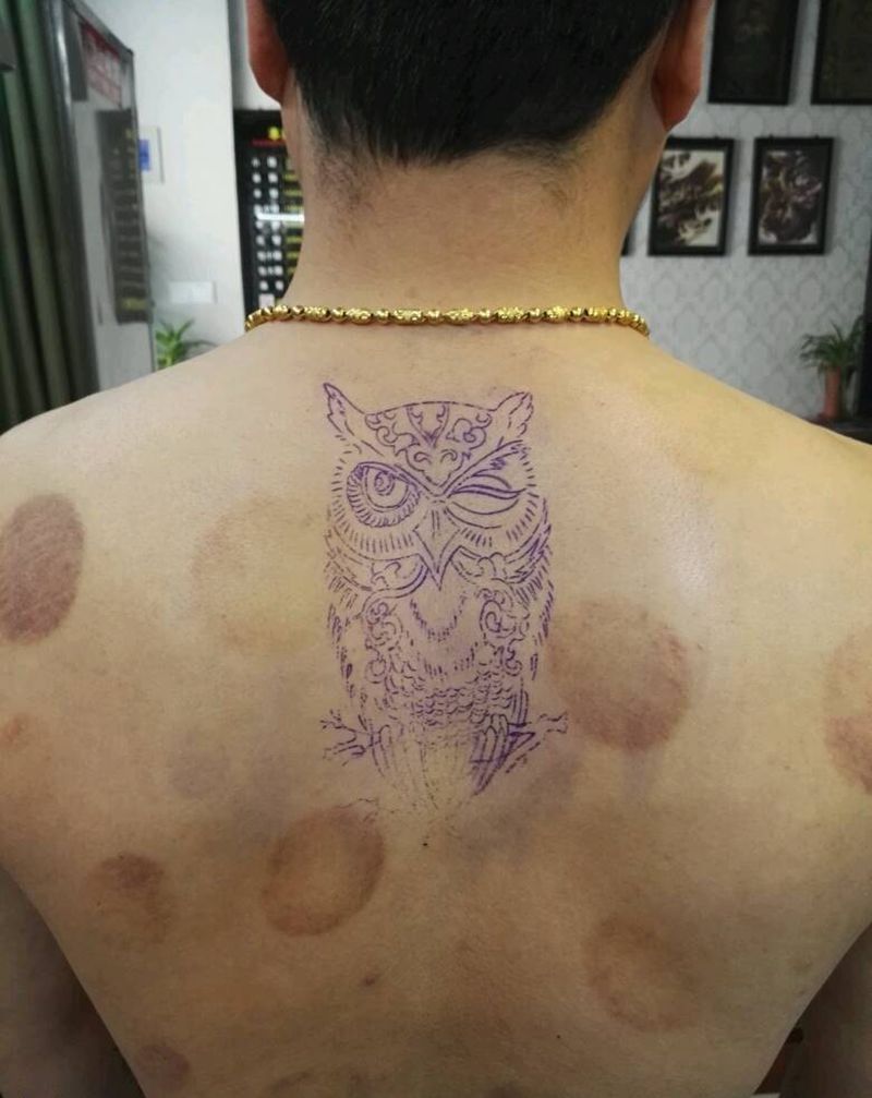 猫头鹰纹身图片_背部欧美清新动物原创成品纹身图案